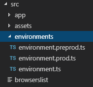 By default it has environment.ts file created and we can create one file per environments like QA, prod, pre-prod etc. Here I have created 2 files for production and pre-production environments.